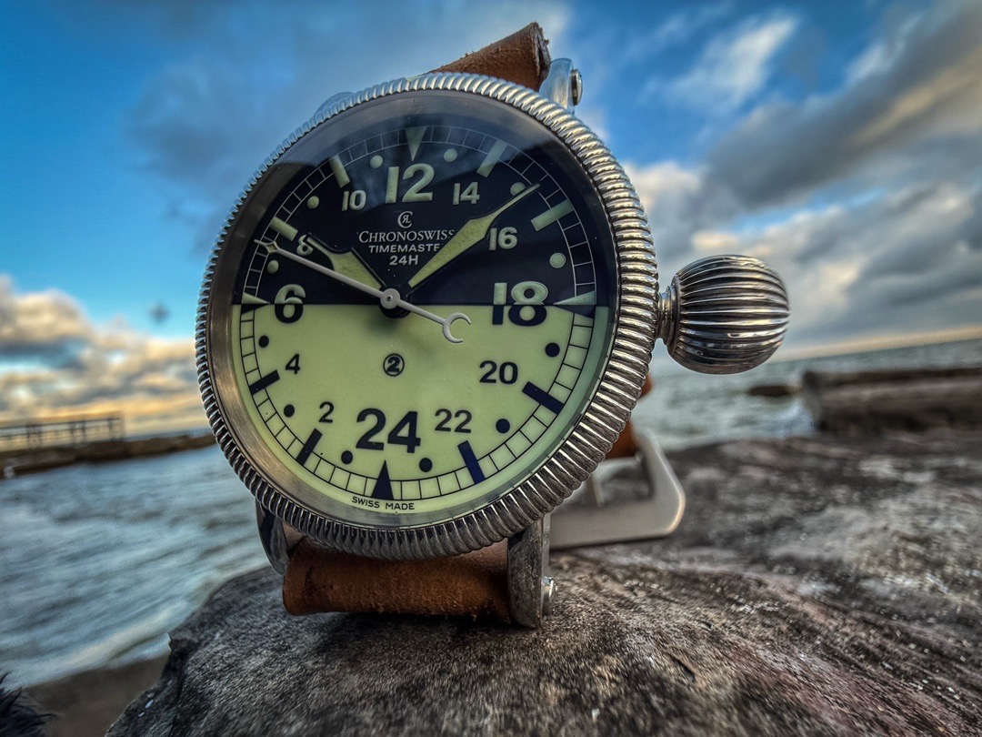 The Chronoswiss Timemaster 24H Day/Night is a testament to the brand's commitment to blending traditional design with modern functionality. The watch's aesthetic is both bold and utilitarian, making it a favorite among collectors and enthusiasts alike.