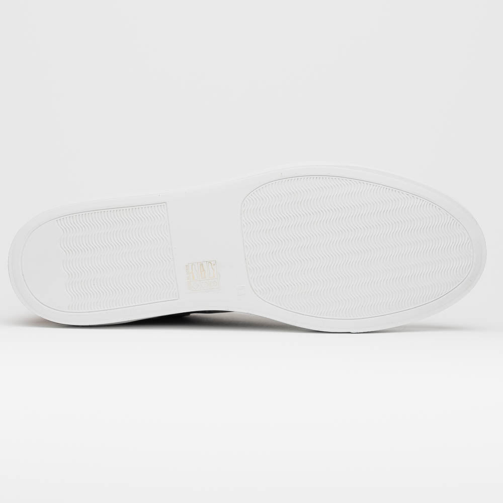 Diaz Rubberized Calfskin Sneaker Navy 65-229-NVY — Handcrafted in Italy, this sneaker blends luxury materials with everyday practicality. The matte finish rubberized calfskin upper delivers a sleek, low-profile silhouette that stands up to daily wear.
