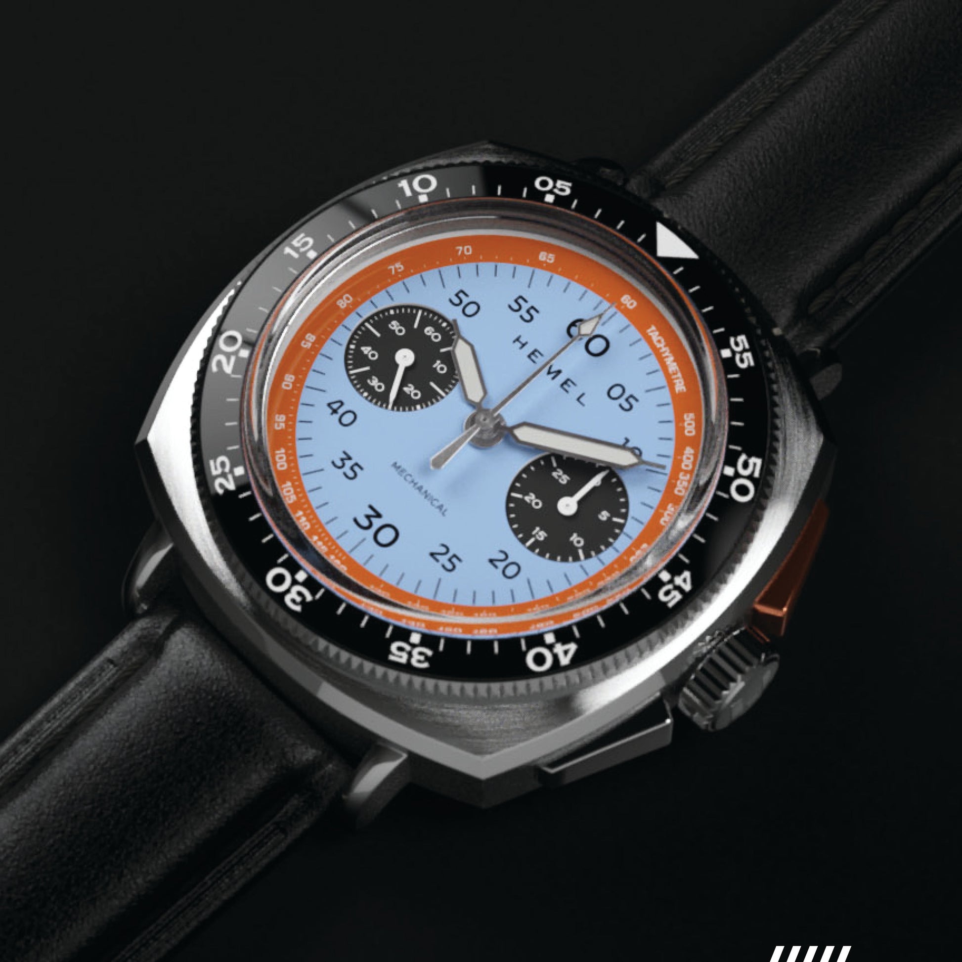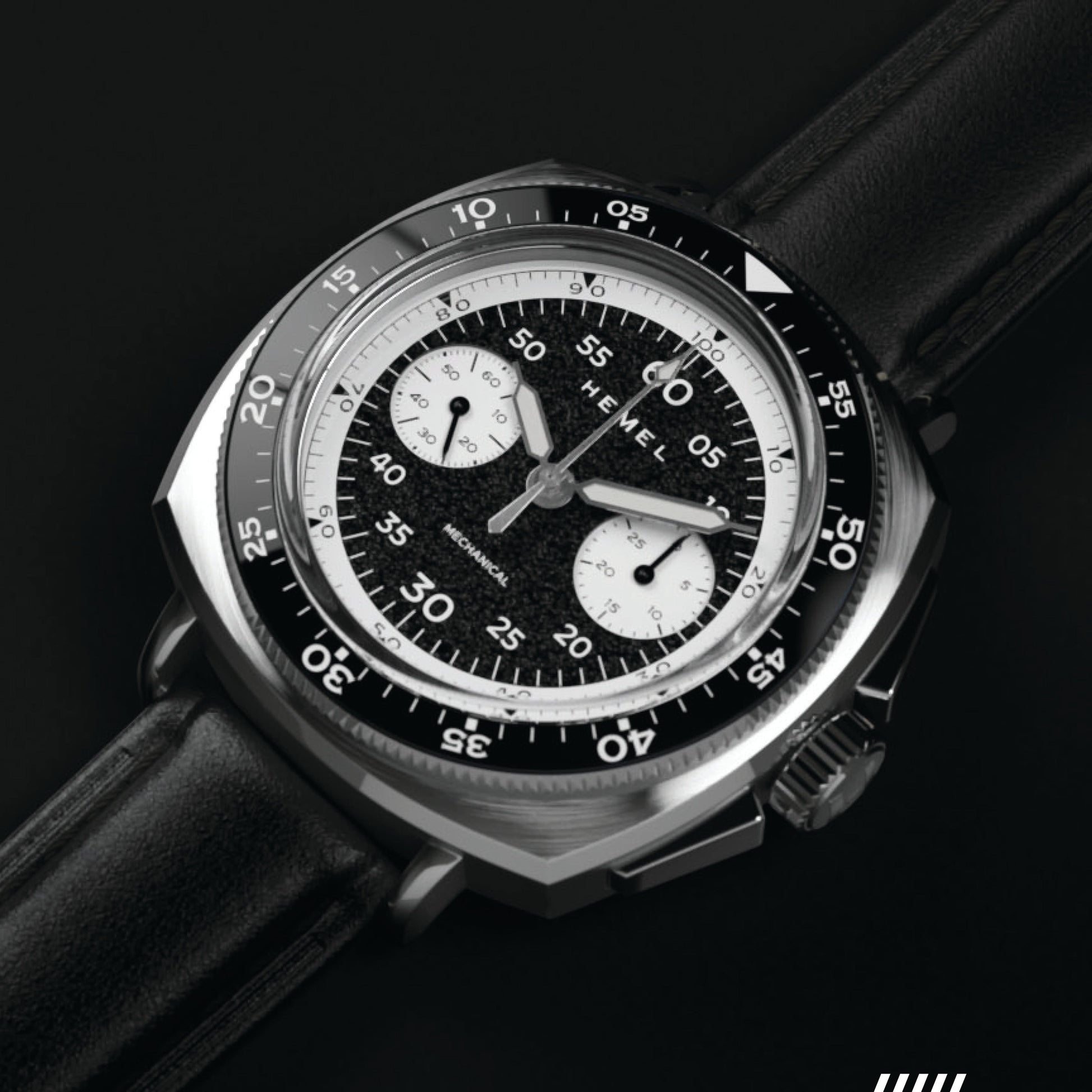 Meet the Sky Racer Hand Winding Mechanical Watch, part of the Limited HF Series. Created in partnership with The League of Microbrands—the fastest-growing online microbrand community—this time-honored collaboration re-cases the renowned ST19 column wheel chronograph movement into a bold cushion-case design. The result is a watch that marries heritage with aesthetic innovation, featuring a distinctive rational panda dial with an unexpected sandpaper texture and meticulously appointed details throughout.